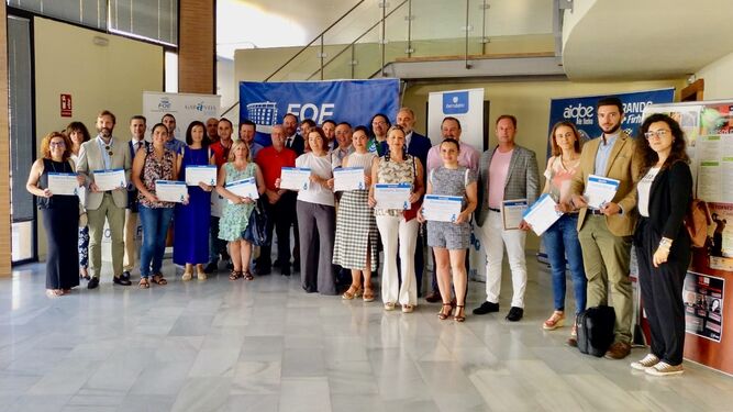 A la entrega de los diplomas asistió Matías Rodríguez como máximo representante de ASPROMIN y se llevó a cabo en el transcurso de un acto celebrado la semana pasada por la mutua en el Centro de Cooperación Empresarial Andalucía-Algarve de Huelva (sede de la Federación Onubense de Empresarios), que fue presentado por Francisco Alonso Villar, director de Ibermutua en Huelva, y José Luis Garcia Palacios, presidente de la FOE.
